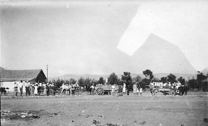 מאחורי הקלעים של הפקת הסרט העלילתי העברי הראשון בארץ ישראל - עודד הנודד, ע"י הבמאי חיים הלחמי - 1932, הסעה לסט ההסרטה בנהלל.